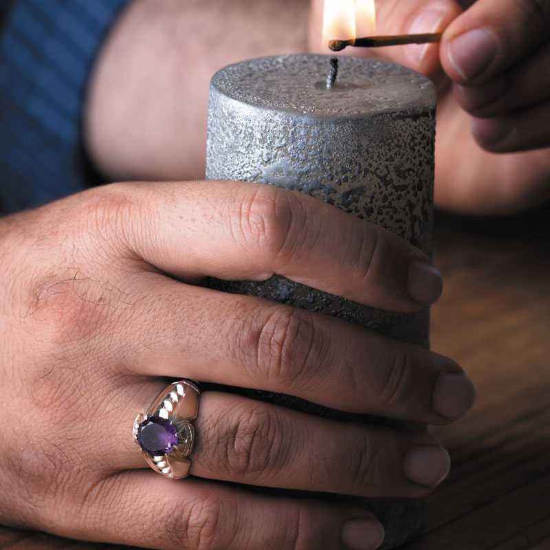 این انگشتر که آمیتیست بنفش رنگ آن در ابعاد 9*10 میلیمتر به زیبایی تراش خورده است، به صورتی خوش قواره روی رکاب فیلی جای گرفته است و هنرمندان مجموعه جواهرات شرافت با هنرمندی تمام هلالهایی را روی بدنه دستساز آن نقرهکوبی کرده اند. در ادامه با ما همراه باشید تا بیشتر با زوایای این انگشتر نقره آشنا شوید.