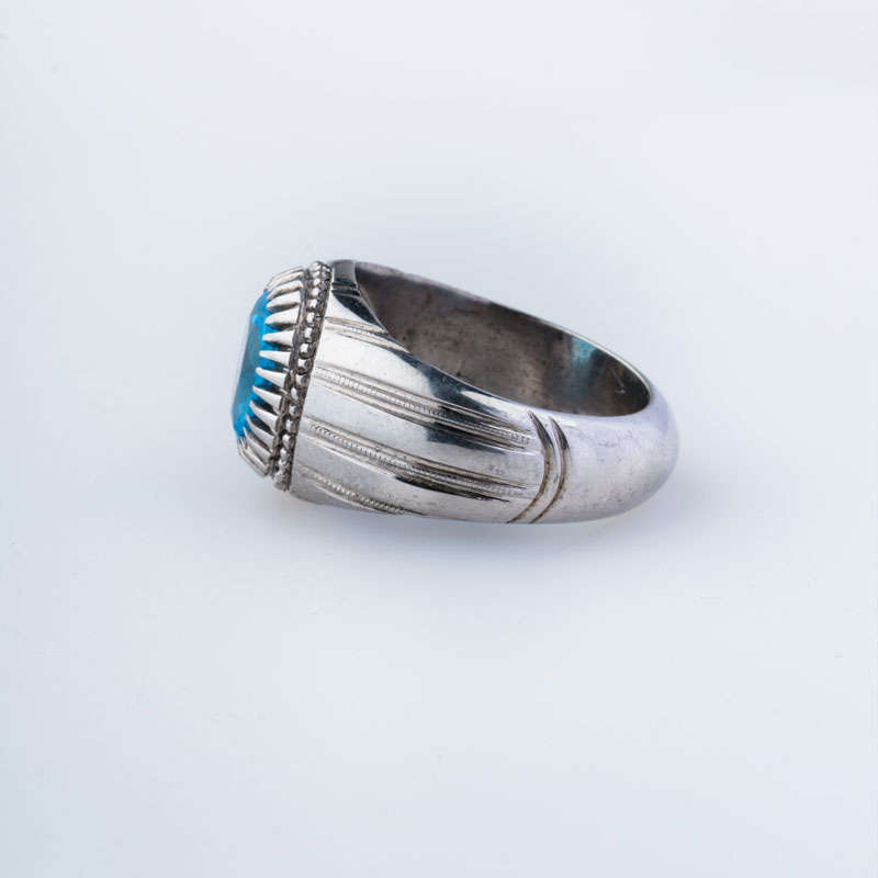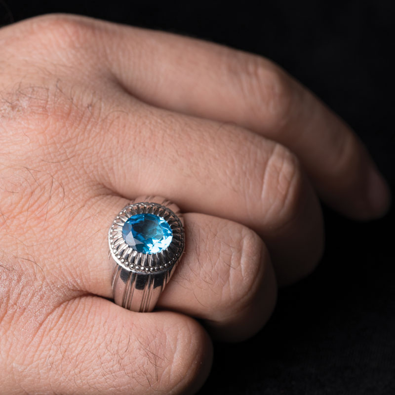 نگین آبی سوئیسی انگشتر توپاز رغز، نگینی چند وجهی است که رنگ بی‌نظیرش، آبی اعجاب‌انگیزترین تنگه ایران را مهمان نگاه آقایان می‌کند. در این اثر زیبا، استاد پارسا نگین 3 قیراطی اثر را در میانه رکاب شیاری گنجانده و با آبکاری نقره فام رکاب دستساز نقره، به خلق طرح زیبایی از مدل فیلی دست زده است. در ادامه با ما همراه باشید تا در ابتدا با نگین این اثر که چون بهشتی محصور شده در میان کوه‌های فارس است، بیشتر آشنا شوید.