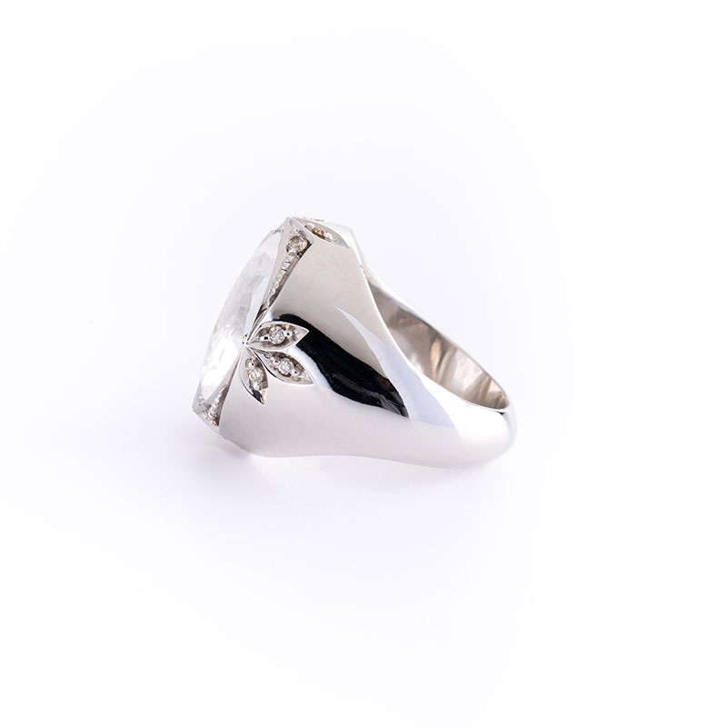 رکاب انگشتر از جنس نقره ۹۵ درصد است و در مدل بااصالت فیلی، طرح جواهرنشان، ساخته شده تا زیبایی و درخشش نگین را چند برابر کند و ترکیبی از استحکام و زیبایی را به نمایش بگذارد.