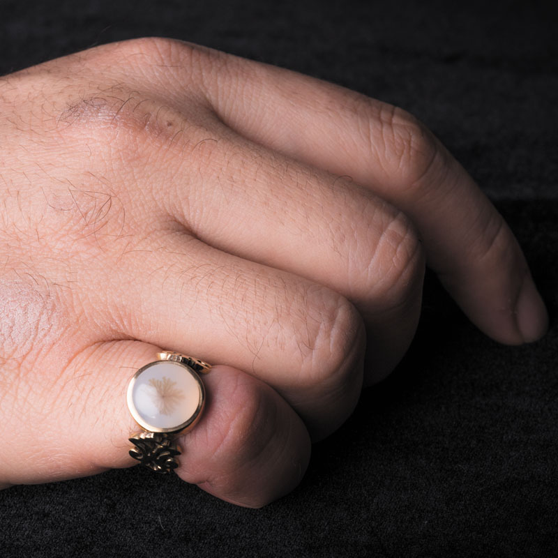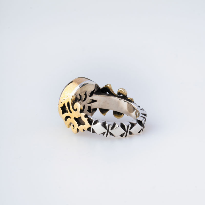 در این اثر، هنرمندان مجموعه جواهرات شرافت با ساخت رکاب صفوی و پیاده کردن طرح تاجدار روی نقره پرعیار انگشتر، گوهره پاک آن را محصور ساخته اند تا جلوهای بدیع از هنر ایرانی را به تصویر کشند. پس در ادامه این مسیر با ما همراه باشید تا بیشتر با زوایای این انگشتر دستساز نقره و برنج آشنا شوید.