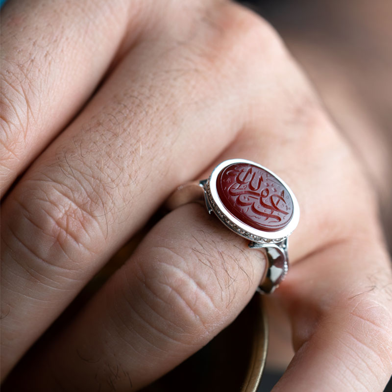 انگشتر عقیق دانیار، با نگین عقیق سرخ یمنی، یکی از ارزشمندترین ساختههای جواهرات شرافت است. نگین این انگشتر مردانه بهصورت دامله تراش داده شده تا درخشش و عمق رنگ سرخ آن، به بهترین شکل ممکن نشان داده شود و چشم هر بینندهای را خیره کند. روی این نگین، حکاکی دستساز عبارت «استغفرالله»، جلوهای از ایمان و آرامش را بههمراه دارد و یادآور پاکی، بخشش و پیوند انسان با خالق است.