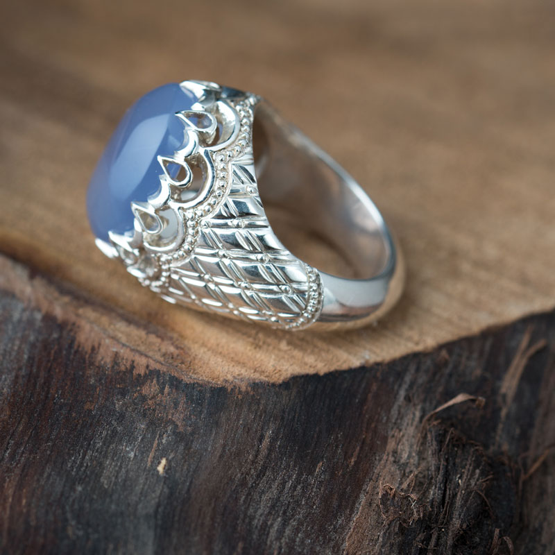 نگین عقیق آبی کبود به این انگشتر جلوه زیبایی داده