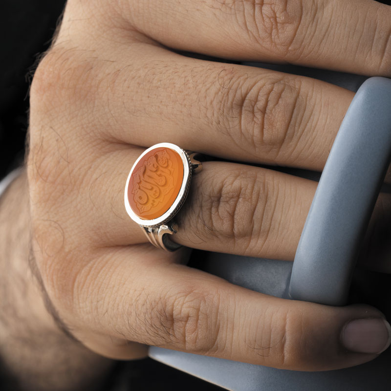 انگشتر عقیق فرهنگ، یک اثر هنری تمامعیار است که مرزهای زیورآلات معمولی را پشت سر گذاشته و به یک قطعه کلکسیونی و میراثی تبدیل شده است. این انگشتر مردانه به یک عقیق زرد و اصیل یمنی مزین شده که عبارت شریف «سلام علی آل یاسین» با هنر دست بهزیبایی هرچه تمامتر روی آن حکاکی شده است. این حکاکی عمیق و استادانه، روحی مقدس به سنگ بخشیده و آن را به همراهی متبرک برای لحظات خاص شما تبدیل کرده است.