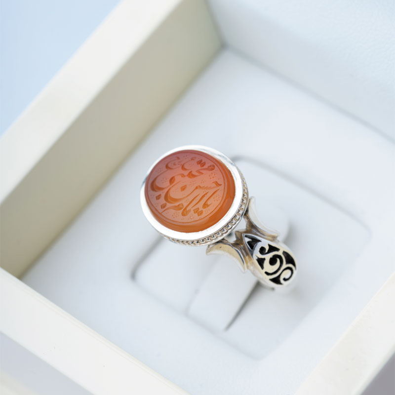 ترکیب طراحی دلنشین این انگشتر در مدل صفوی و قرار گرفتن عقیقی زرد با نام متبرک یا امام حسن مجتبی در میانه آن، نگاه آقایان را به سوی خود میکشد و بسیار مورد علاقه کسانی است که در جستجوی گنجینهای از فواید در کنار هم هستند.
