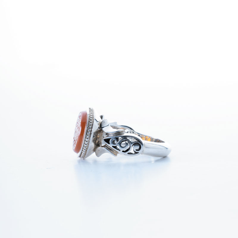هنرمندان مجموعه جواهرات شرافت برای طراحی رکاب انگشتر عقیق مشعل، از نقره 95 درصد استفاده نموده اند و برای ساخت این رکاب دستساز، از طرح اشکی بهره گرفته و آن را به زیبایی روی مدل صفوی پیاده نموده اند.
