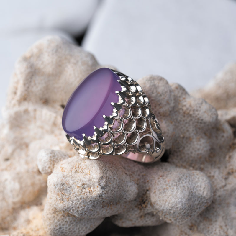 انگشتر عقیق میرعماد همان اثر فاخری است که ابهت و اصالت را در بالاترین حد ممکن به نمایش می‌گذارد. بر تارک این انگشتر مردانه، یک نگین عقیق سوسنی یمنی خودنمایی می‌کند که با رنگ ملایم و کمیاب خود، تضادی هنرمندانه با صلابت رکاب ایجاد کرده است. تراش دامله روی سطح وسیع نگین، باعث می‌شود تا سنگ همچون گنبدی زلال بر انگشت شما بنشیند و چشم‌ها را خیره کند.