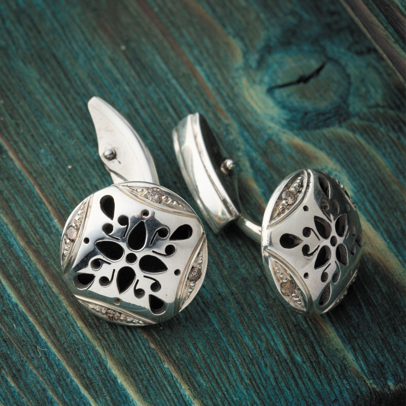 دکمه سر آستین روزنه که در مدلی خاص و منحصر به فرد با نقره 95 درصد ساخته شده است، اثری خاص از فروشگاه جواهرات جواهرات شرافت است که 8 الماس اصل بر بدنه نقره دستساز آن درخششی فوقالعاده به خود گرفته و طرح اسلیمی آن، درست شبیه پنجرههای دایرهای شکل خانههای تاریخی است. پنجرههایی که از دیرباز نام روزنه را به خود اختصاص دادهاند.