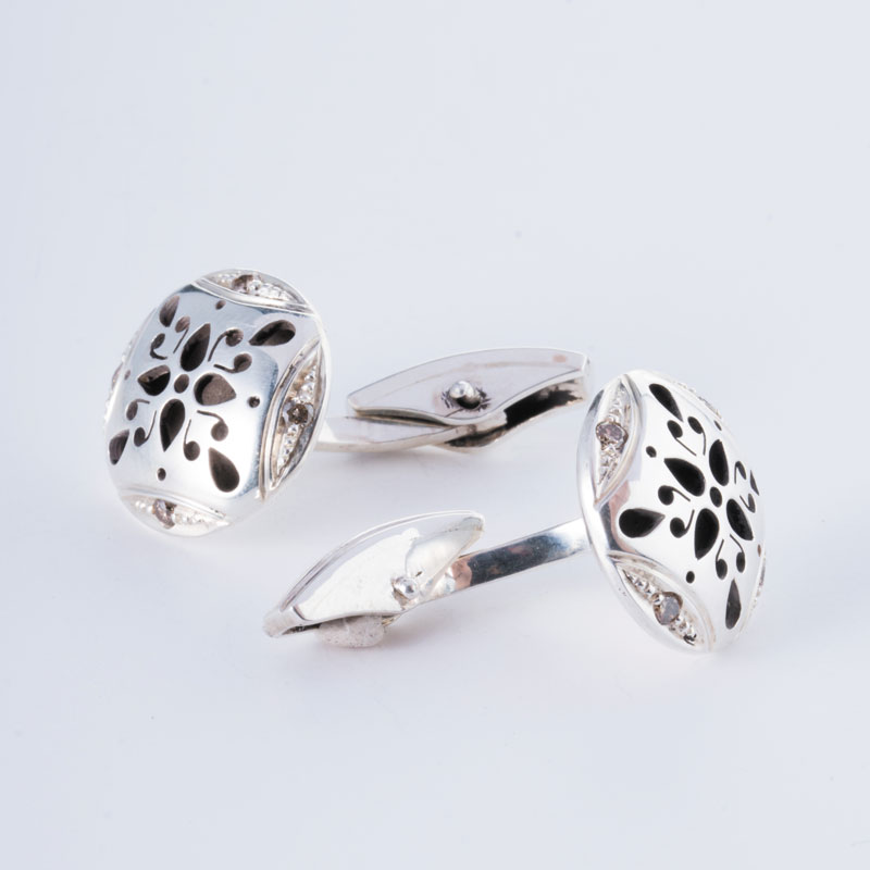 دکمه سر آستین روزنه از نقره 95 درصد ساخته شده است؛ نقرهای که میزان عیار بالایش، آن را کمتر دچار اکسیداسیون میکند. در بدنه نقره این اثر دستساز، 8 الماس اصل به خوبی جانشانی شده است. در واقع هنرمندان مجموعه جواهرات شرافت با ساخت این اثر خاص در مدل اسلیمی طرحی خاص در نقره ایجاد کرده اند.